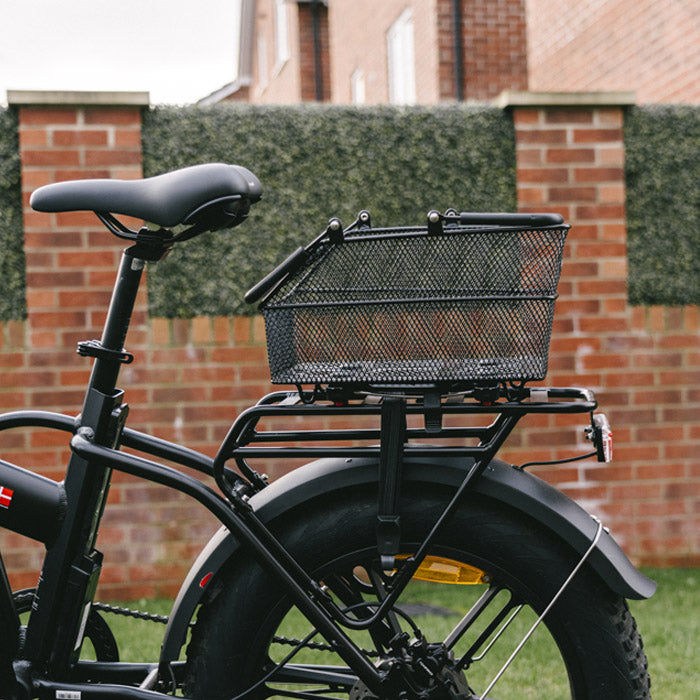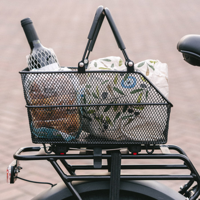 Upgrade your ride with our durable rear basket, designed for convenience, stability, and everyday use. Crafted with a strong mesh build, it offers generous space for essentials or your pet, with an easy mount-and-release system for quick attachment and removal.