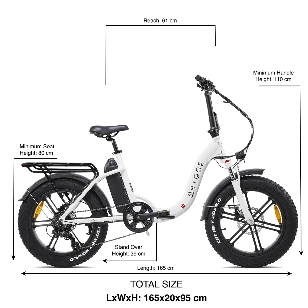- Den foldede størrelse af Vester Step E-Cykel er 98x52x76 cm (LxBxH).