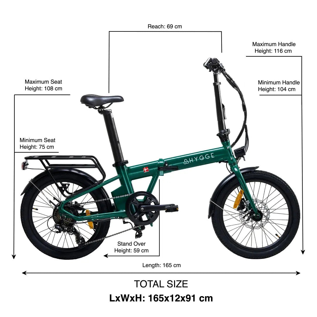 - La taille repliée du Virum E-Bike est de 81x35x72 cm (LxPxH)